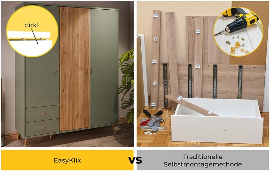 Ngày nay, tủ quần áo được sản xuất với nhiều chất liệu như gỗ MDF chống ẩm phủ Melamine, gỗ tự nhiên (sồi, óc chó), kính cường lực hoặc kết hợp kim loại, nhằm đáp ứng đa dạng nhu cầu sử dụng và phong cách nội thất.