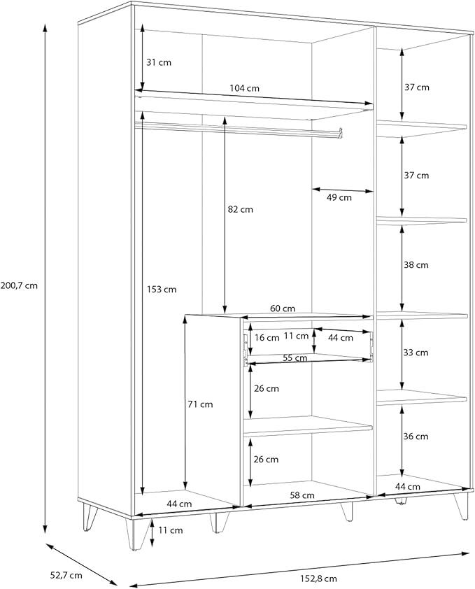 ✅ Có. Handywood thiết kế tủ quần áo tích hợp gương, kệ, đèn LED tiện lợi.