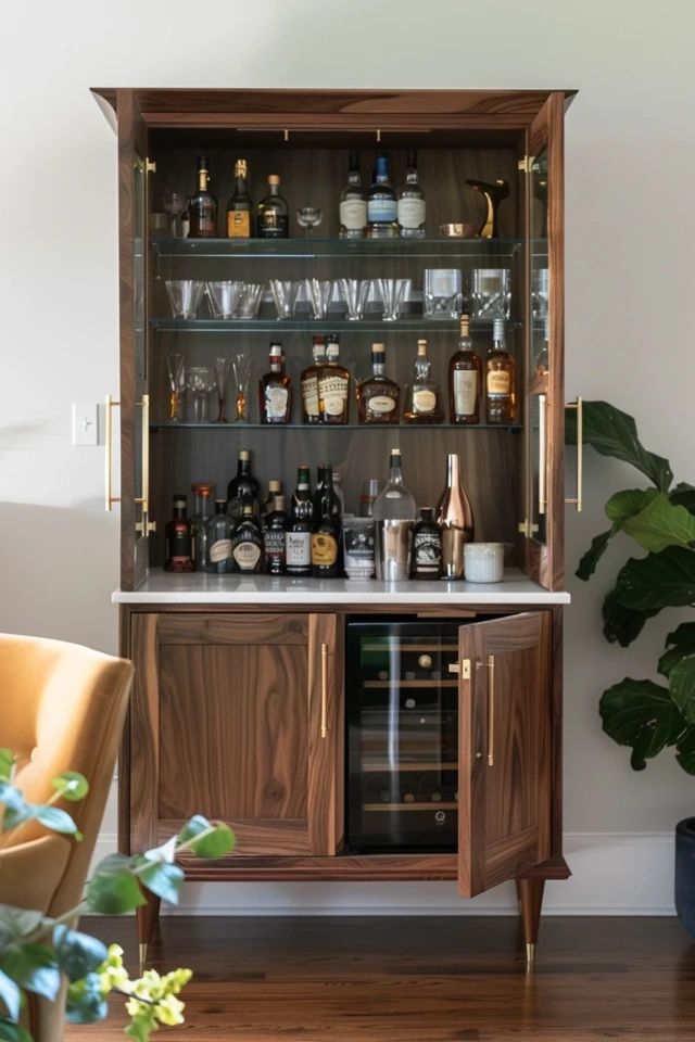 Tủ rượu kết hợp tủ trang trí | Trưng bày rượu và decor | Phòng khách, phòng ăn |