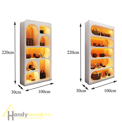 Tủ trưng bày phong cách độc lạ TTB104 – thiết kế phá cách, độc đáo, mang lại điểm nhấn ấn tượng cho phòng khách, showroom, văn phòng sáng tạo.