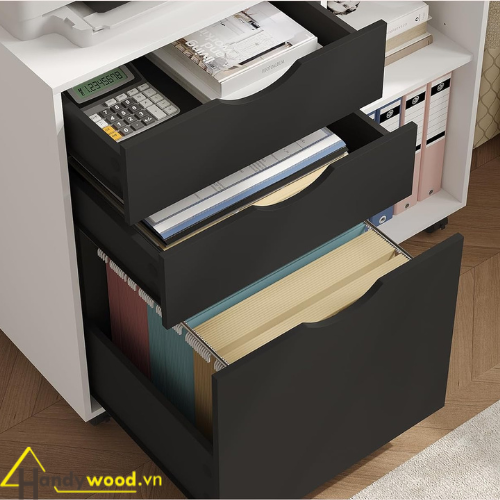 Đa công năng: Vừa lưu trữ hồ sơ, vừa chứa vật dụng cá nhân, vừa làm kệ trang trí.